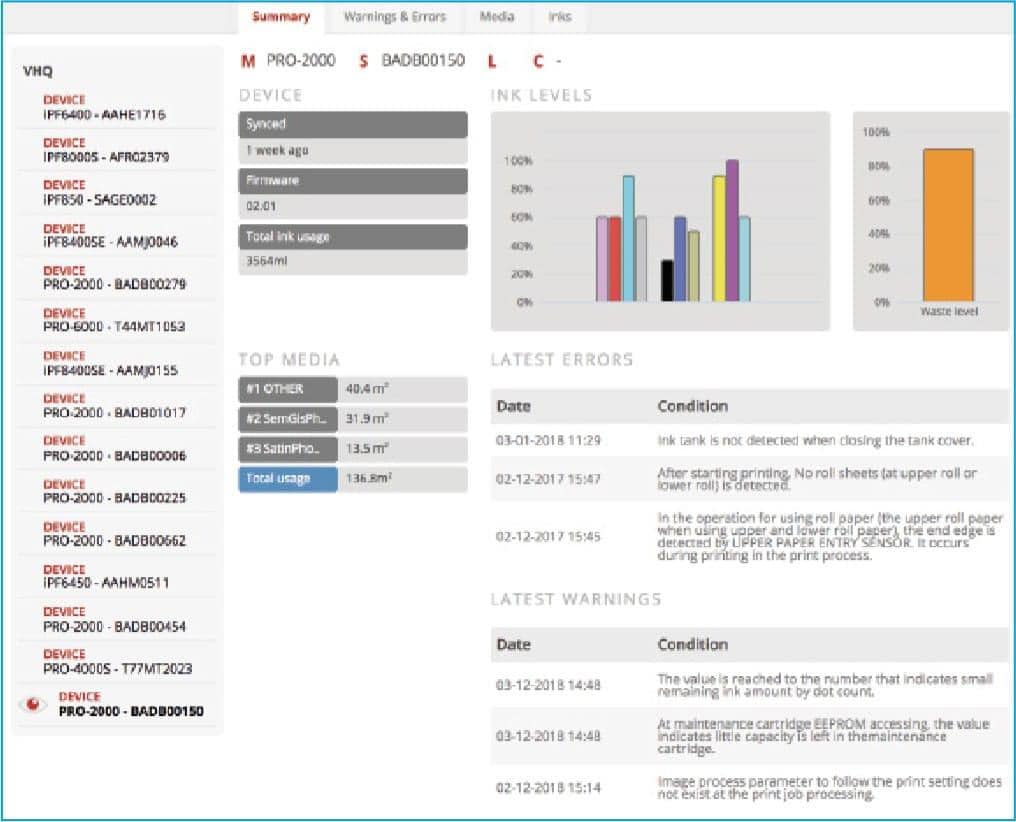 When you log onto our eService Portal you will be greeted with a summary page with key detailed information regarding your large format printer.