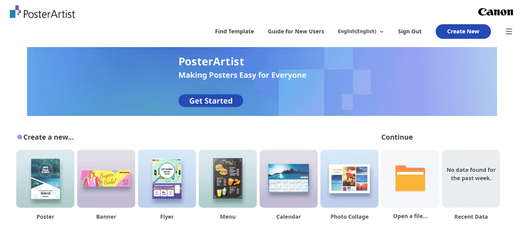 Just go to https://posterartist.canon , then you can either sign in or create a free account to get started.