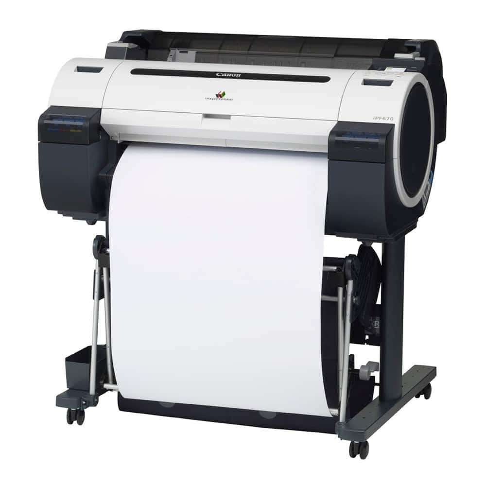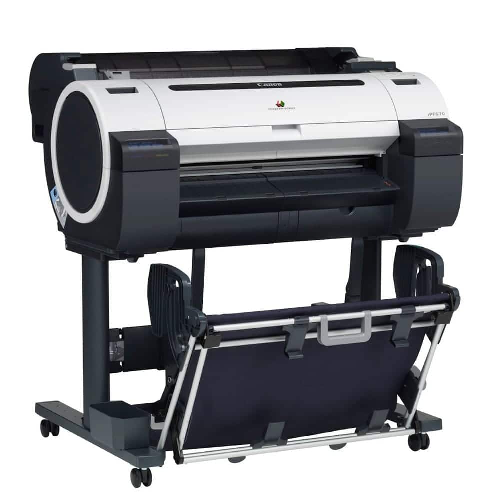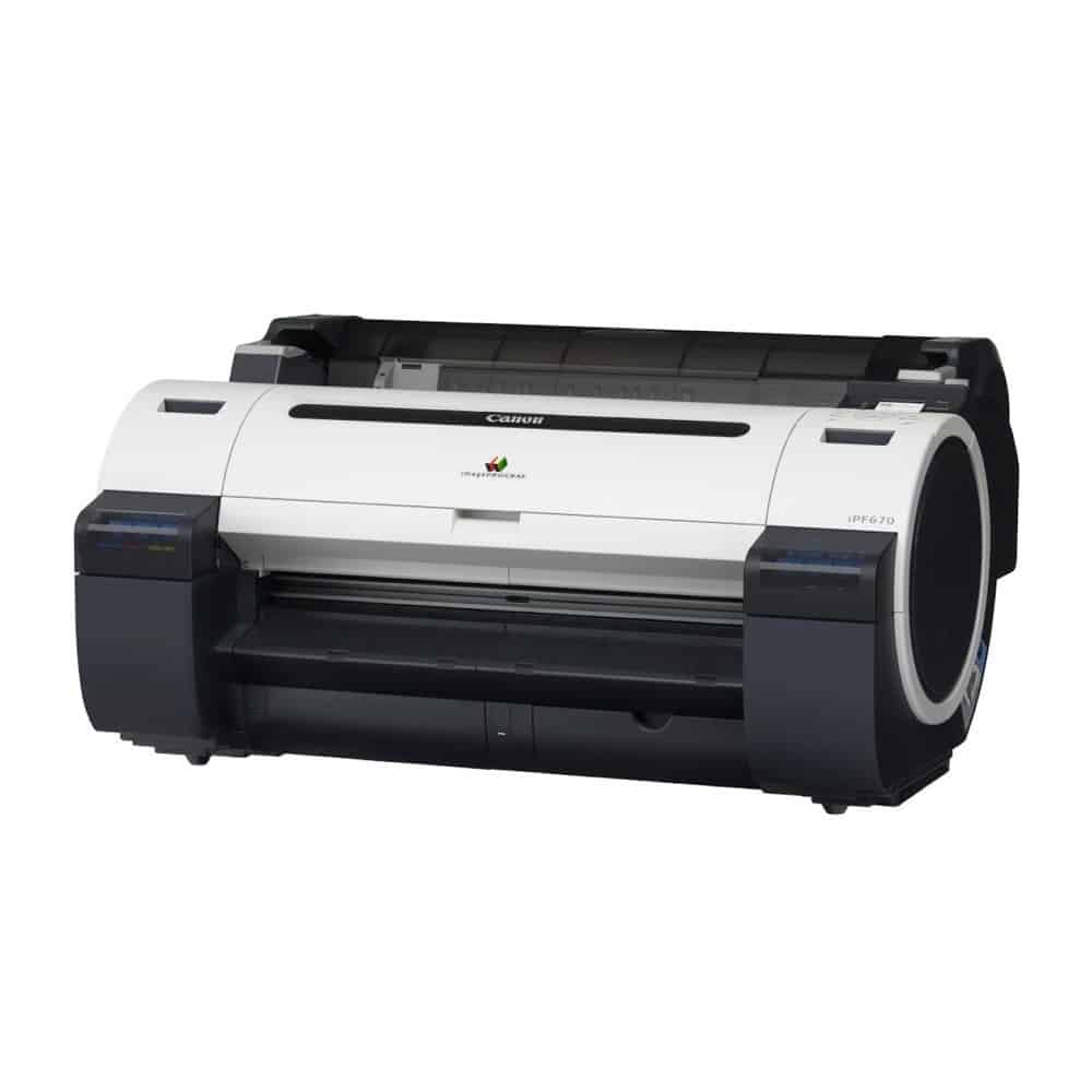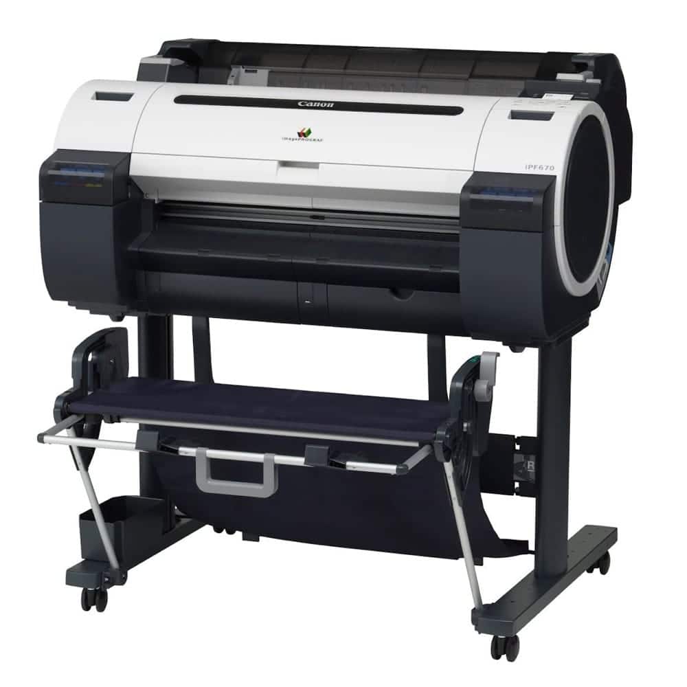 Designed for practicality and usability, the iPF670 has a space saving, unique design to fit anywhere. A compact, slim-line design with a front-loading paper system and a front access ink tank system means you can change paper and ink easily even when printer is installed in a tight space or flush against a wall. A large, bright, menu-driven LCD control panel gives easy access to sophisticated functions. Prints are automatically stacked and can be collected from a high capacity basket to prevent damage. There’s even a handy print timer to let you know how long a job will take to complete. Borderless printing technology keep you more productive as there is no need for offline trimming and Auto Skew Correction enables unattended printing by automatically adjusting for any skew in orientation and feeds the paper/media correctly.