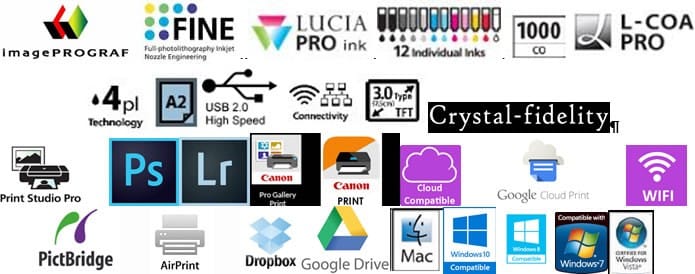 The Canon imagePROGRAF PRO-1000 features a vast range of connectivity options, offering versatility and flexibility to integrate into existing professional workflows. The Canon imagePROGRAF PRO-1000 includes Canon’s PrintStudio Plug in, which allows printing quickly from a range of advanced software suites, such as Adobe PhotoShop and Lightroom. The Canon imagePROGRAF PRO-1000 prints wirelessly from a range of devices including laptops, PC’s, tablets, smart phones and cameras and is compatible with a number of wireless technologies including AirPrint, PIXMA Cloud Link, Wireless PictBridge, as well as standard USB2.0 and Ethernet connections. The imagePROGRAF PRO-1000 also features cloud printing support, so photos stored in popular online storage services such as Dropbox and Google Drive can be printed directly.