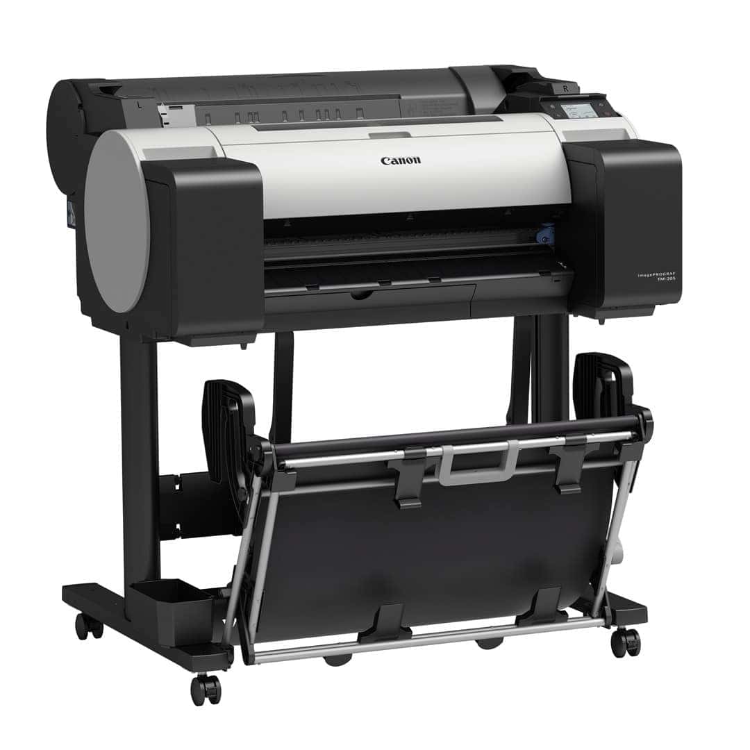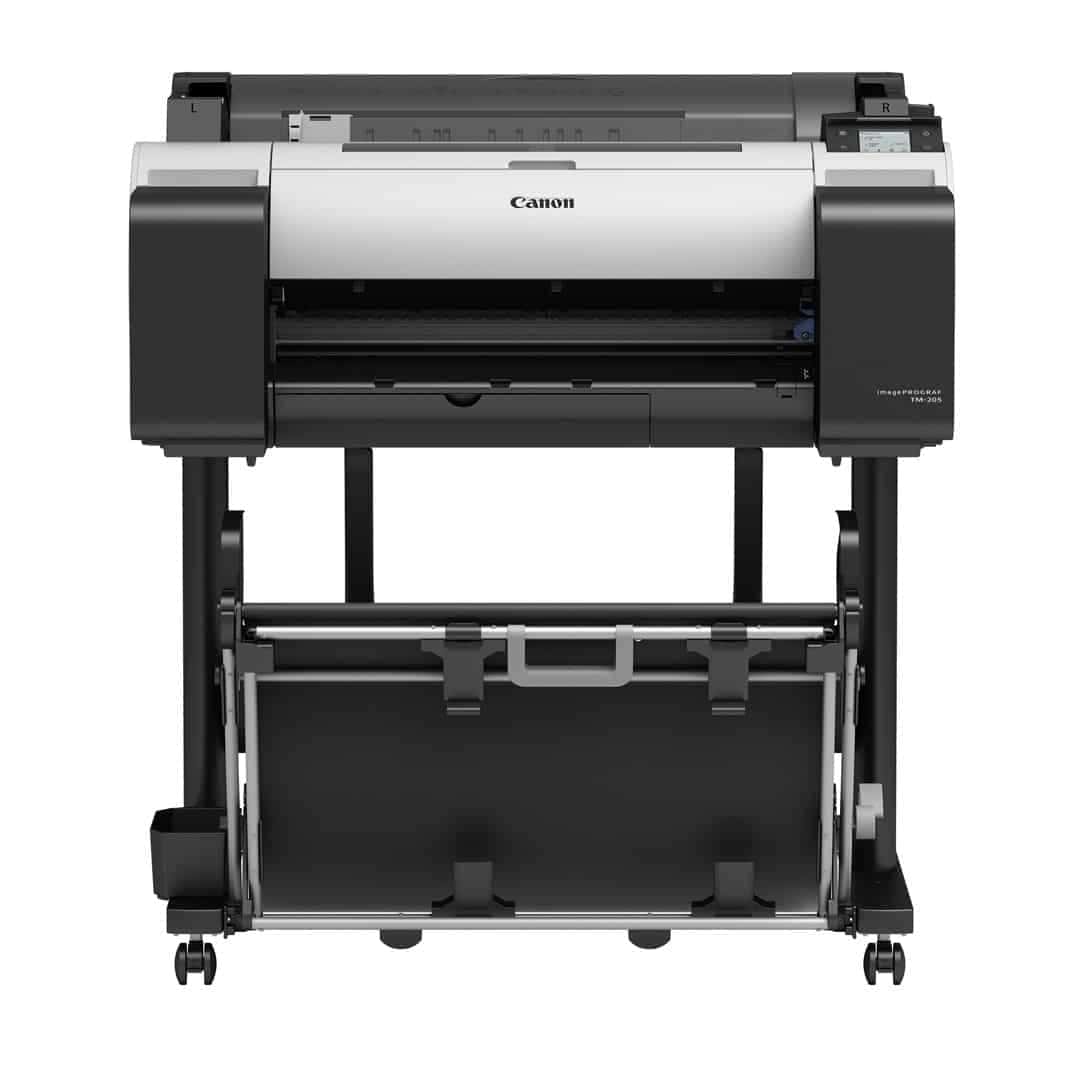 The Canon imagePROGRAF TM-205 is a 24 inch/A1, 5-colour large format printer with a 500 GB hard disk and 2GB standard memory. Other printers in the Canon imagePROGRAF TM Series include the TM-200, with 2GB standard memory, the TM-300, a 36 inch/A0 version and the TM305, a 36-inch/A0 with a 500 GB hard disk. There are also multi-function printing/scanning solutions available, including the TM-200 MFP L24ei, the TM-300 MPF L36ei, and the TM-300/TM-305 MFP T36.