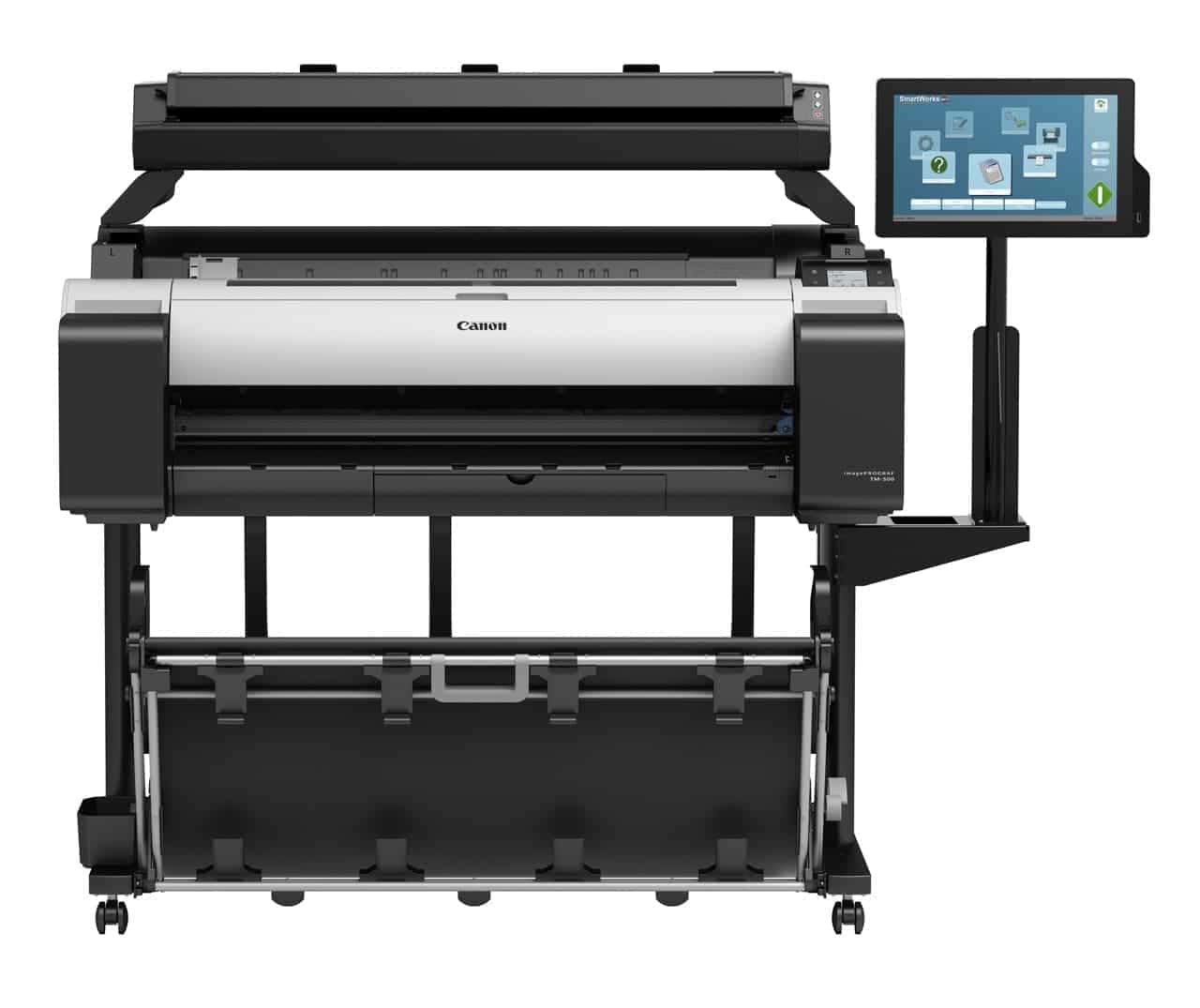 The Canon imagePROGRAF TM-300 MFP T36 is a 36 inch/A0, 5-colour large multi-function large format scanner and printer with 2GB standard memory. Other scan and print solutions in the Canon imagePROGRAF TM Series include the TM-305 MFP T36, a 36-inch/A0 version with a 500 GB hard disk, the TM-300 MPF L36ei, a 36-inch/A0 version with a small display.