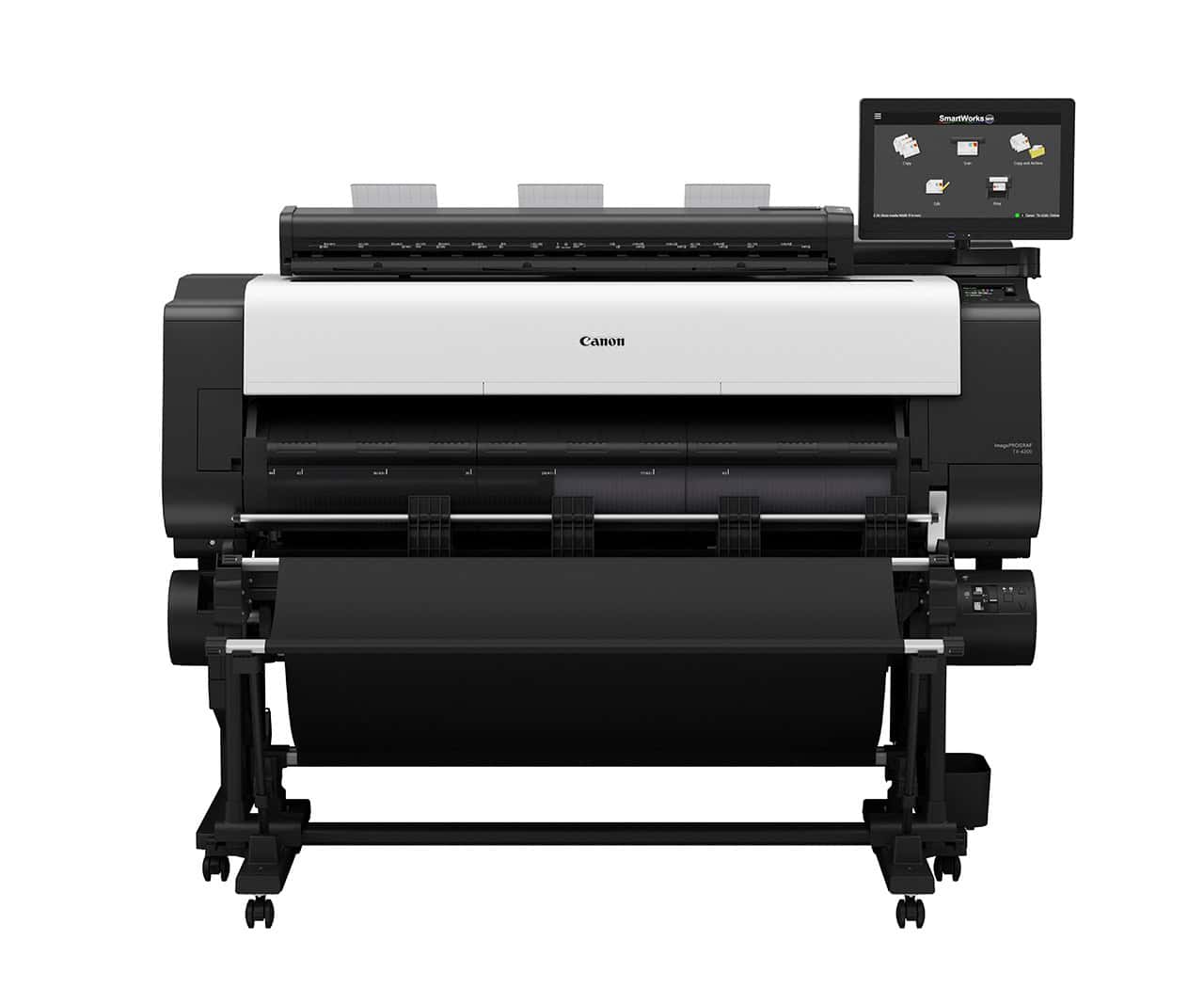 The Canon imagePROGRAF TX-4200 MFP Z36 large format 44″/1118mm B0 printer and 36″/914mm A0 scanner provide integrated functionality, streamlining print and scan processes with a premium multitasking device. The TX-4200 MFP Z36 delivers impressive productivity and professional image quality. User friendly by design, the TX-4200 MFP Z36 is packed with security features and supports sustainability goals. Whether you are after faster scanning, faster printing, improved security, seamless workflow processes, border-less capability, unrivaled quality, expert media handling, output durability or high productivity, the Canon imagePROGRAF TX MFP Z36 series meets the challenge.