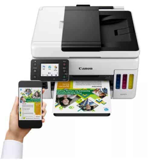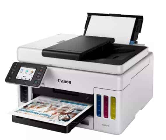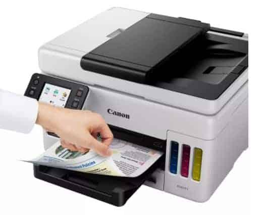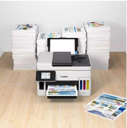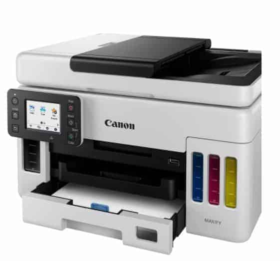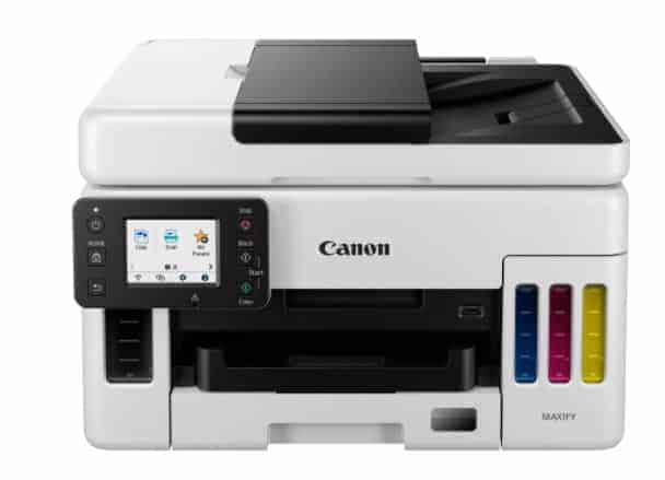 The Canon MAXIFY GX6050 is ideal for businesses needing high volume, speedy and cost-effective daily A4 colour printing from a compact, feature-packed 3-in-1 with 350-sheet paper capacity, 50-sheet ADF (auto document feeder), and a low Total Cost of Ownership.