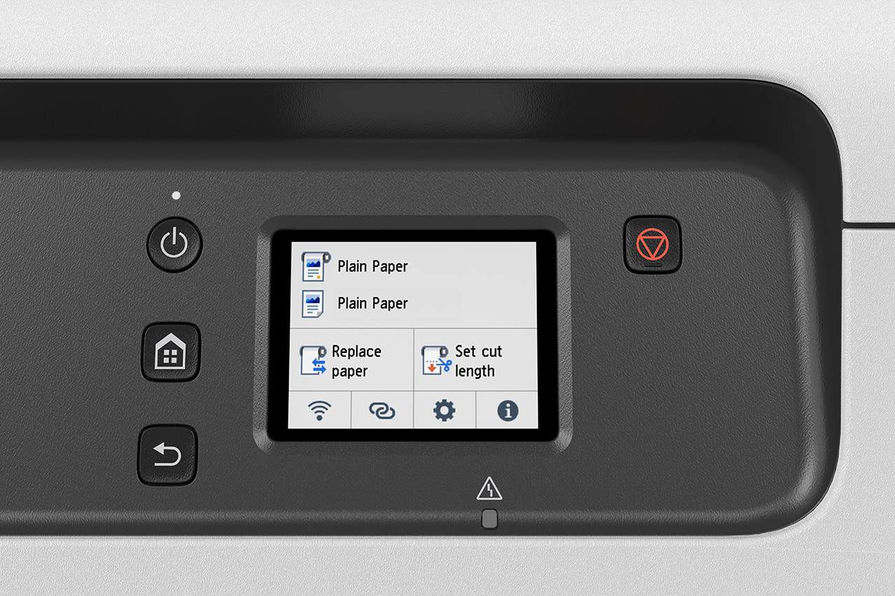 The Canon imagePROGRAF TC-20M is easy to operate: ink refills, paper loading and maintenance are all accessible from the front. Remaining amount of ink and paper roll can be checked on a smartphone.