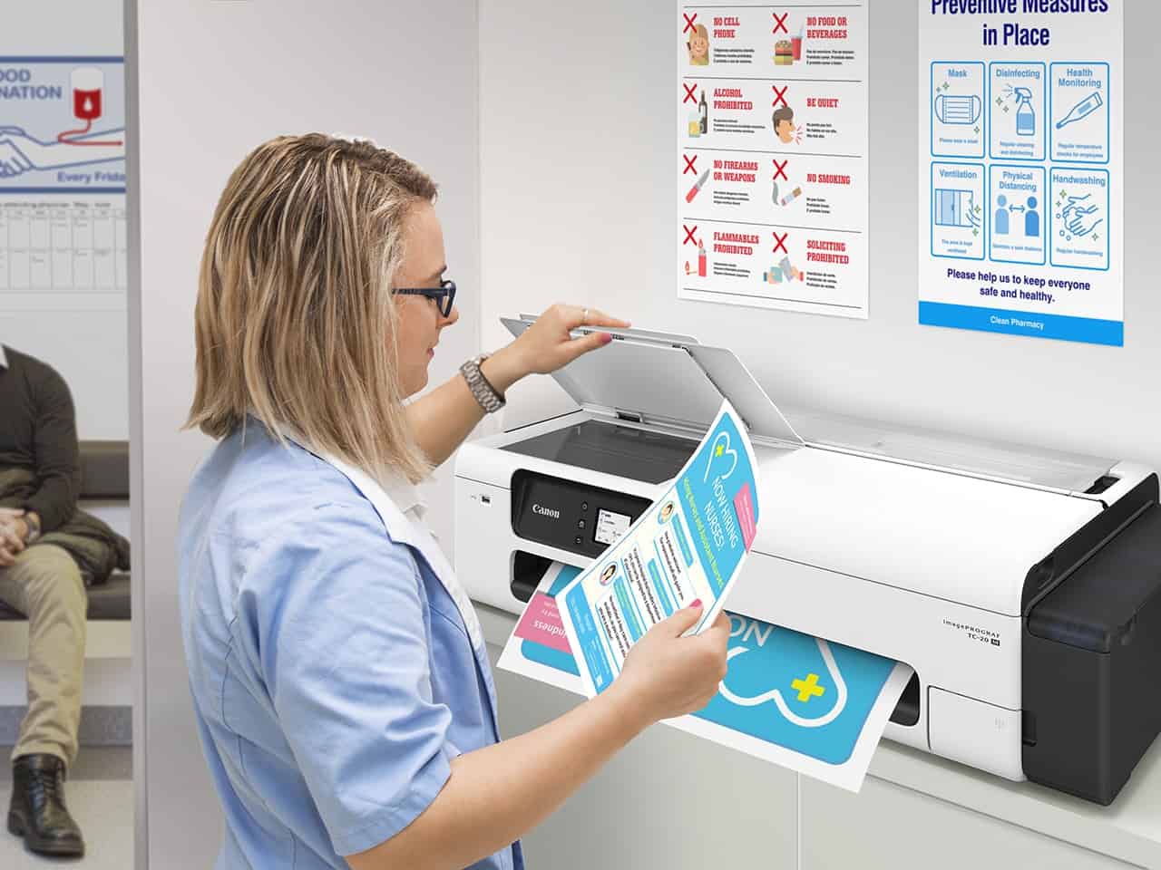 No longer will your creativity be held back by budget or space constraints with the Canon imagePROGRAF TC-20M. Whether you need technical drawings for working from home, or drawings, Gantt charts and warning posters at a construction site, or retail point of purchase signs and sales reports, or posters and flyers for restaurants, the Canon imagePROGRAF TC-20M is the ideal solution for the budget, the limited space, and the sustainability conscious user.