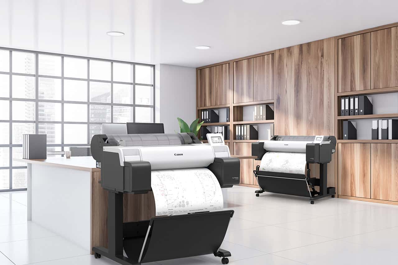 Canon imagePROGRAF TM Series CAD, GIS, and Poster (5-colour) wide format printers use a number of advanced Canon proprietary technologies to achieve fine lines, small text and highly detailed graphics produced with incredible accuracy and sharpness. The Canon TM Series builds on the previous success of the Canon TX Series, with updates to all core technologies, including the print head, ink system, and mechanical platform.