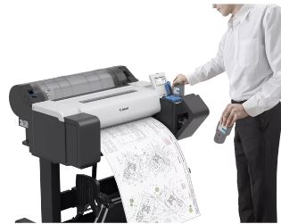 The Canon imagePROGRAF TM-240 has an optional Stand Basket for neatly stacking in the order of printing. Additional roll holders are available for the Canon imagePROGRAF TM-240. The TM-240 is also available in an MFP solution, the Canon imagePROGRAF TM-240 MFP Lm 24, designed for scanning, copying and archiving requirements without requiring a PC.