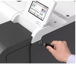 Direct printing from a USB drive is available with the TM-350. Print JPEG and PDF files via a USB drive to the printer’s USB port. Print preview is displayed on the operational panel, so data can be reviewed before printing, preventing file selection errors and other mistakes.