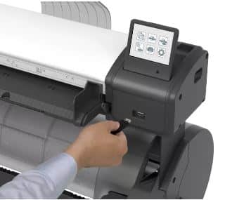 The Canon TM-350 MFP Lm36 A0 printer and scanner features a tilting touchscreen panel on the printer, which displays media type, media size, remaining length and remaining ink amount, removing the guesswork for multiple users. Adjust the angle for easy viewing and the LCD panel size from 3 to 4.3 inches for best readability.