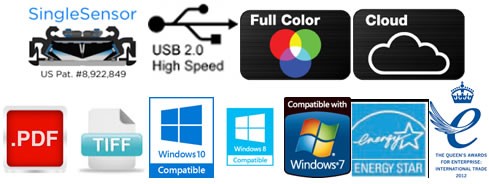 Colortrac SmartLF Scan! incorporates propriety technologies unique to Colortrac products. These technologies include SingleSensor scanning and DocLogic. Colortrac’s SingleSensor scanning is a patented technology which features a full width straight-line contact imaging sensor combined with bi-directional long-life LED lighting system for optimum object illumination and instant on scanning capability.