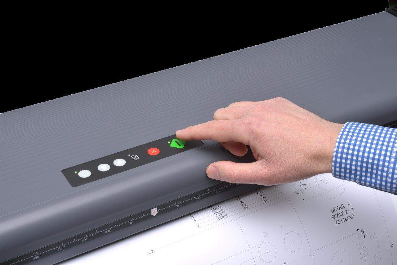 The Contex SD One+ 36 large format scanner is designed to be used at your desktop, so as-builds and other design changes can be scanned right when you need them. Using a standard USB connection, the Contex SD One+ 36 connects to any PC or laptop. Simply install Nextimage Free file scanning software included with the SD One+ 36, and scanning is ready to commence. Nextimage FREEcan be installed on as many PC’s as you like, and is compatible with Windows 11 and Windows 10. The Contex SD One+ 36 also has a control panel directly on the scanner.