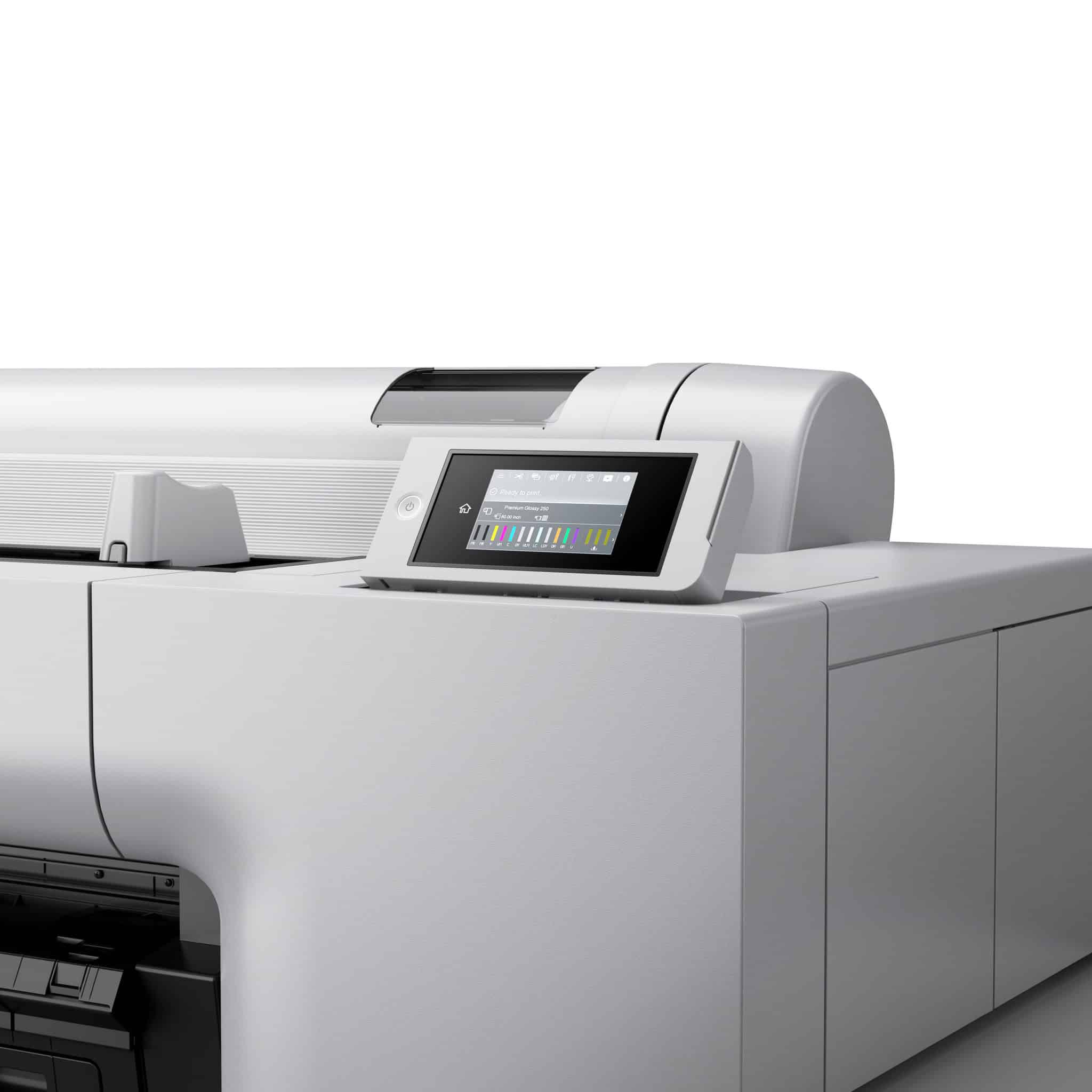 The Epson SureColor P20500 is easy to use and features a 4.3-inch LCD touchscreen for highly intuitive operation. The 4.3″ LCD touch-screen panel has a range of configuration options, including a large print status view that makes the print job status easy to view from a distance. The highly intuitive, user-friendly interface removes the guesswork . Even loading heavy roll media is a simple talk, thanks to the roll adapter. The Epson Media Installer tool is ideal for quick and painless media registration. An illuminated paper path makes it easier to watch the printing in progress.