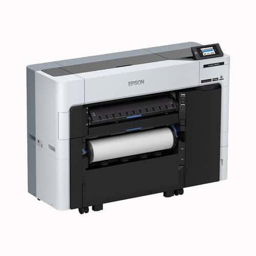 The Epson SureColor SC-P6500E printer is the ideal solution for low to medium production.  Untrained users can easily load cutsheet and posterboard from the front.  The autoswitch feature reduces frequent roll changes during busy times without user interaction.  Automatic roll feeding saves time loading new media.  Automatic roll feeding aligns and adjusts paper for optimal tension during loading.  The SC-P6500D accepts rolls of media from 17- 24 inches and accepts cut sheet media via the sheet friction feed.