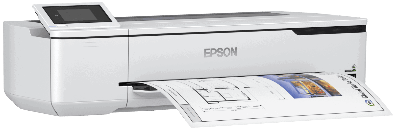 The Epson SC-T2100 is a compact desktop printer designed for low print volumes using rolls or sheet paper. Perfect for home office or studio environments.