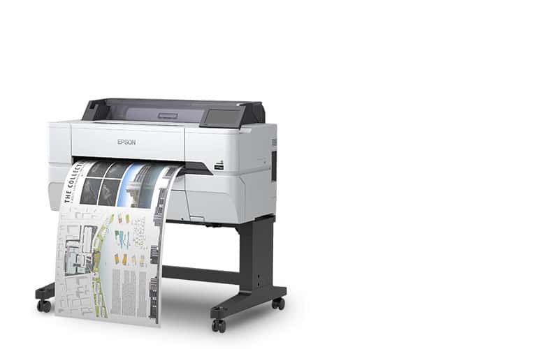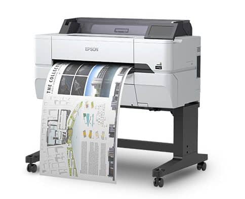 The Epson SureColor SC-T3405 Large Format Printer features an impressive price and performance with low running costs with a clean, compact design, available as a desktop printer thoughtfully designed to fit seamlessly into most environments.