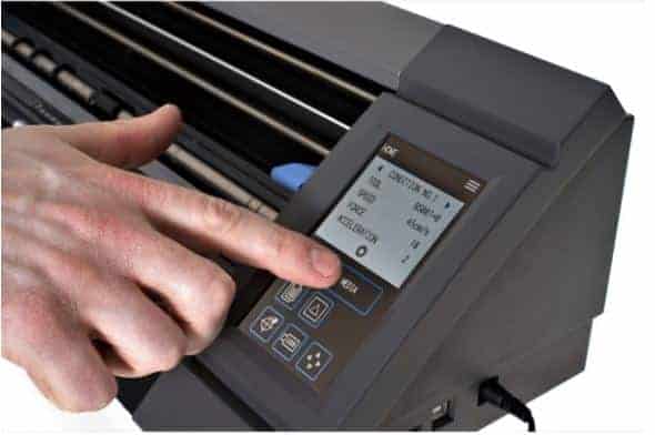 The Graphtec CE LITE-50 Cutting Plotter has intuitive operation via the 4.3 inch touch panel located on the front of the plotter. Cutting speed and cutting pressure are set on the the touch panel. The direct key menu keys include copy, cut test, home, move position, and USB offline operation.