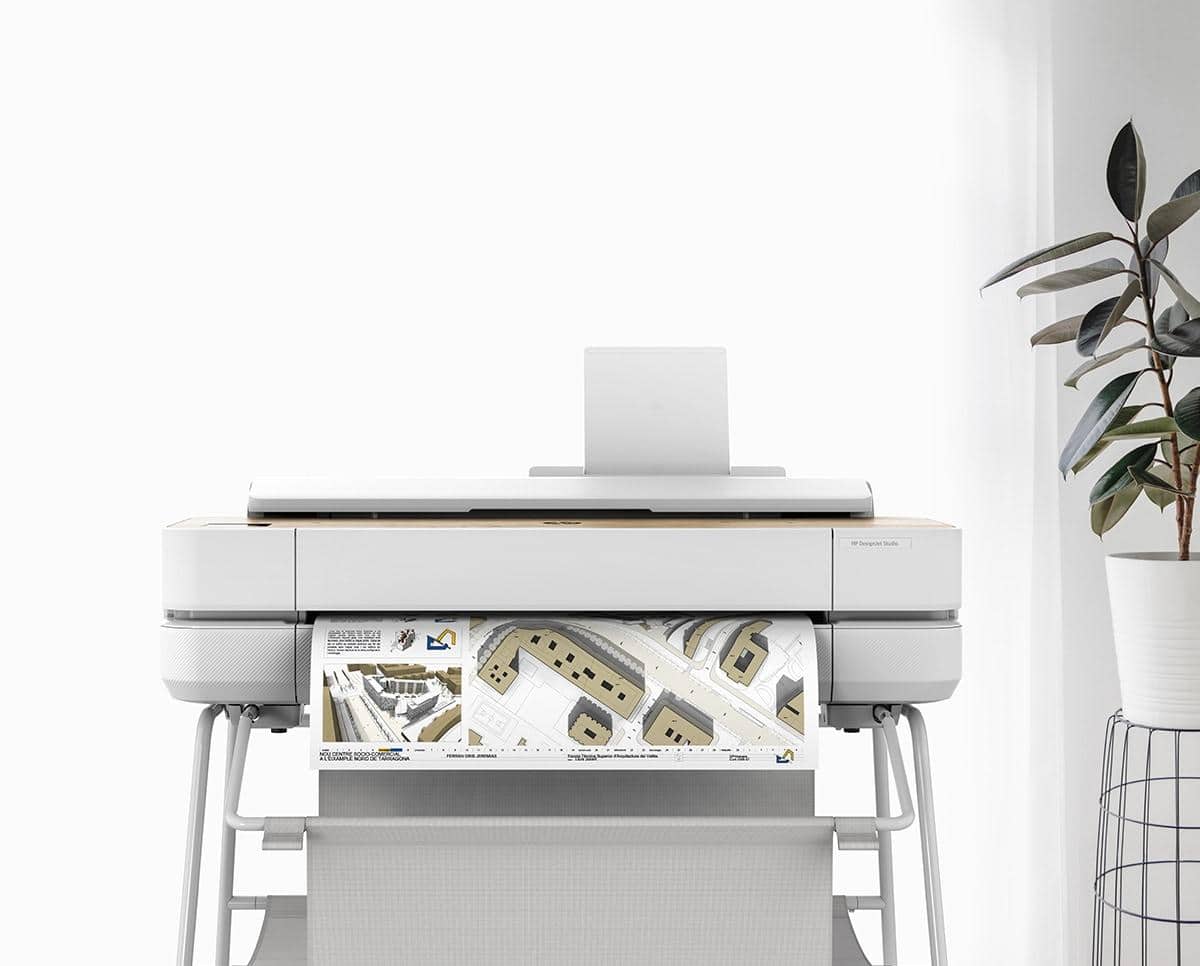 Discover how simple large format printing can be with the new HP DesignJet Studio Series are the easiest, complete solutions for large format printing and the first in a series of net carbon neutral HP plotters. The HP DesignJet Studio Series are where design meets performance in the world’s easiest large format plotters for Architects, Engineering and Construction professionals working at home or in a office that need an easy-to-use affordable plotter in-house. Available in A1/24 inch size and A0/36 inch, the HP DesignJet Studio Series includes two different finishes, wood or steel, to fit in with your environment.