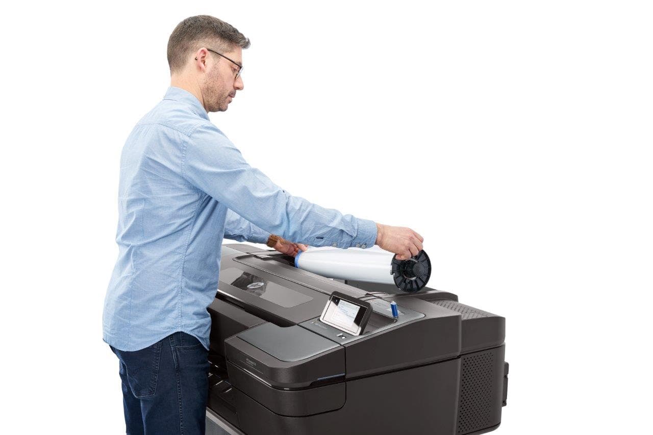 Optional accessories include additional 24-inch and 3-inch core adapters to accommodate for different media usage, such as technical paper and photographic paper, conveniently ready to load. There is a USB to LAN adapter for network compatibility. Scanning options are also available, including the HP HD-Pro 42-in Scanner and the HP SD Pro 44-in Scanner. HP JetAdvantage Security Manager is another option available to support print security policy creation and deployment to fleet of printers and offers risk-based reporting to help IT quickly view fleet status and prove compliance. HP JetAdvantage Security Manager includes an automated application and updating of unique CA-signed device certificates.