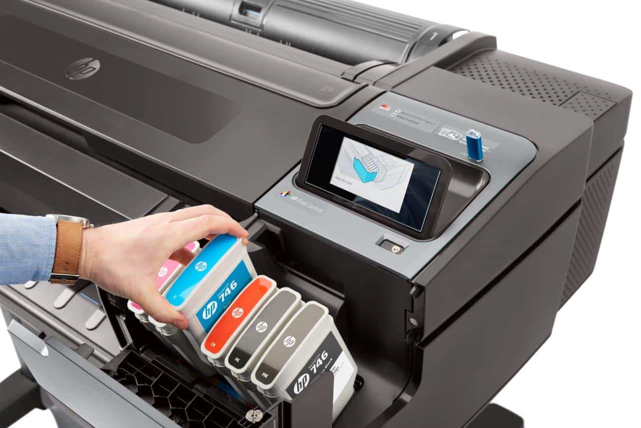 HP DesignJet Z6 & Z9+ PostScript Printer Series use long-lasting HP 746 printheads which feature automatic self-maintenance and nozzle substitution routines to provide flawless image quality, lower running costs and more efficient ink usage during installation and cleaning routines. The five user-replaceable printheads contain two colours per printhead with 2112 nozzles each, or 1056 nozzles per colour. The ink drop size ranges from 4 picoliter (light cyan, light magenta, light grey, grey, photo black and gloss enhancer) to 6 picoliter (magenta, yellow, matte black, red, green, and blue). To ensure dependable and consistent image quality every time, the drop-ejection performance of every nozzle is periodically and automatically tested with an Optical Drop Detector.