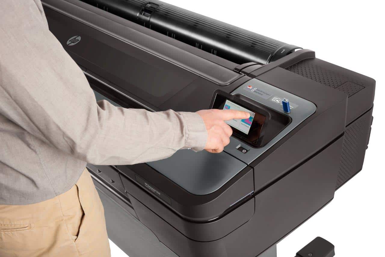 Optional accessories include additional 44-inch spindles and 3-inch core adapters to accommodate for different media usage, such as technical paper and photographic paper, conveniently ready to load. There is a USB to LAN adapter for network compatibility. A 44-inch Take-Up Reel is available. Scanning options are also available, including the HP HD-Pro 42-in Scanner and the HP SD Pro 44-in Scanner. HP JetAdvantage Security Manager is another option available to support print security policy creation and deployment to fleet of printers and offers risk-based reporting to help IT quickly view fleet status and prove compliance. HP JetAdvantage Security Manager includes an automated application and updating of unique CA-signed device certificates.
