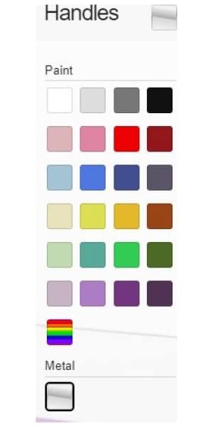 Handles Silver metal ‘D’ handles (2 per drawer)