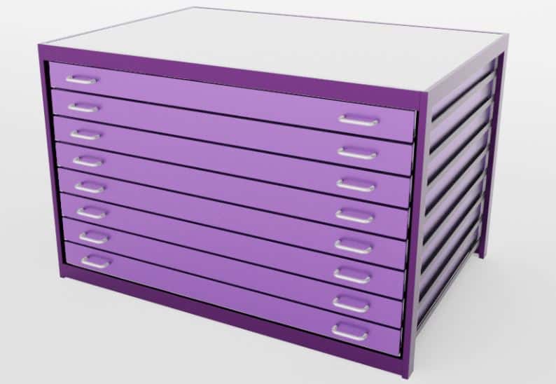 The pure white finish on both the frame and the drawers looks sleek, however if you would prefer to add a little colour to your workspace then go ahead! Contact us to discuss colour options before putting your plan chest into production.