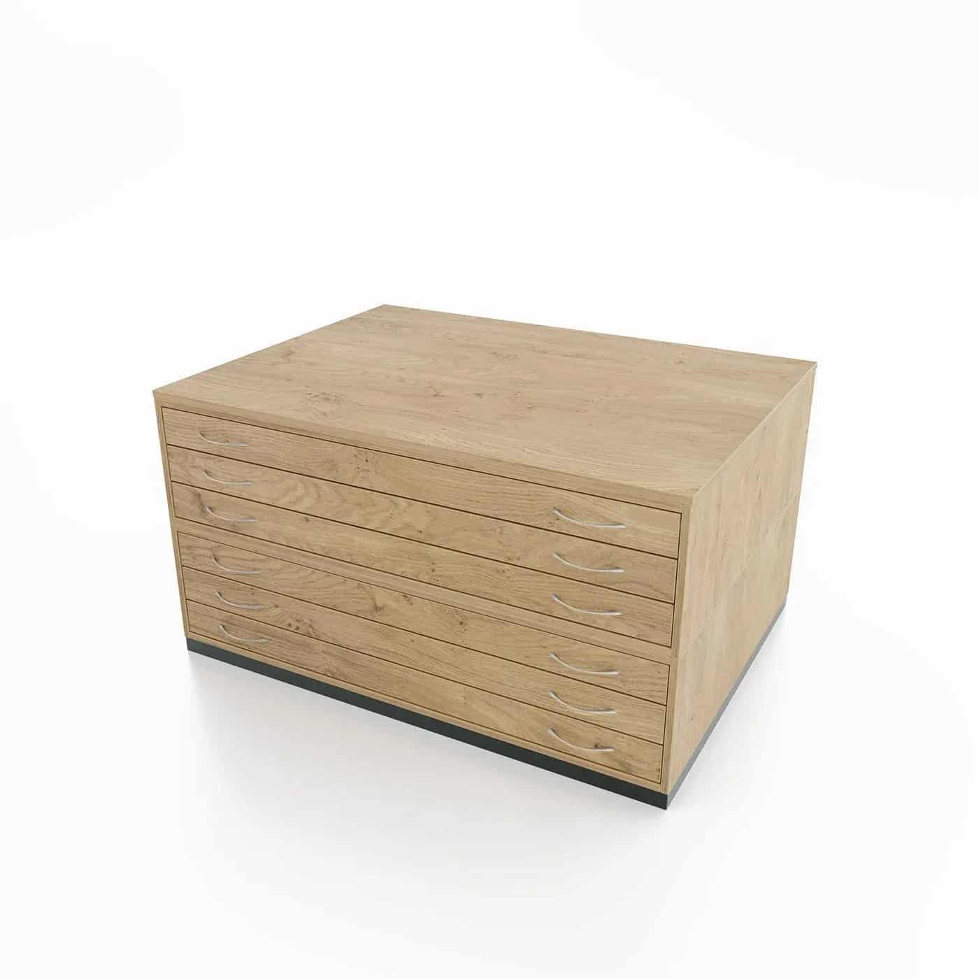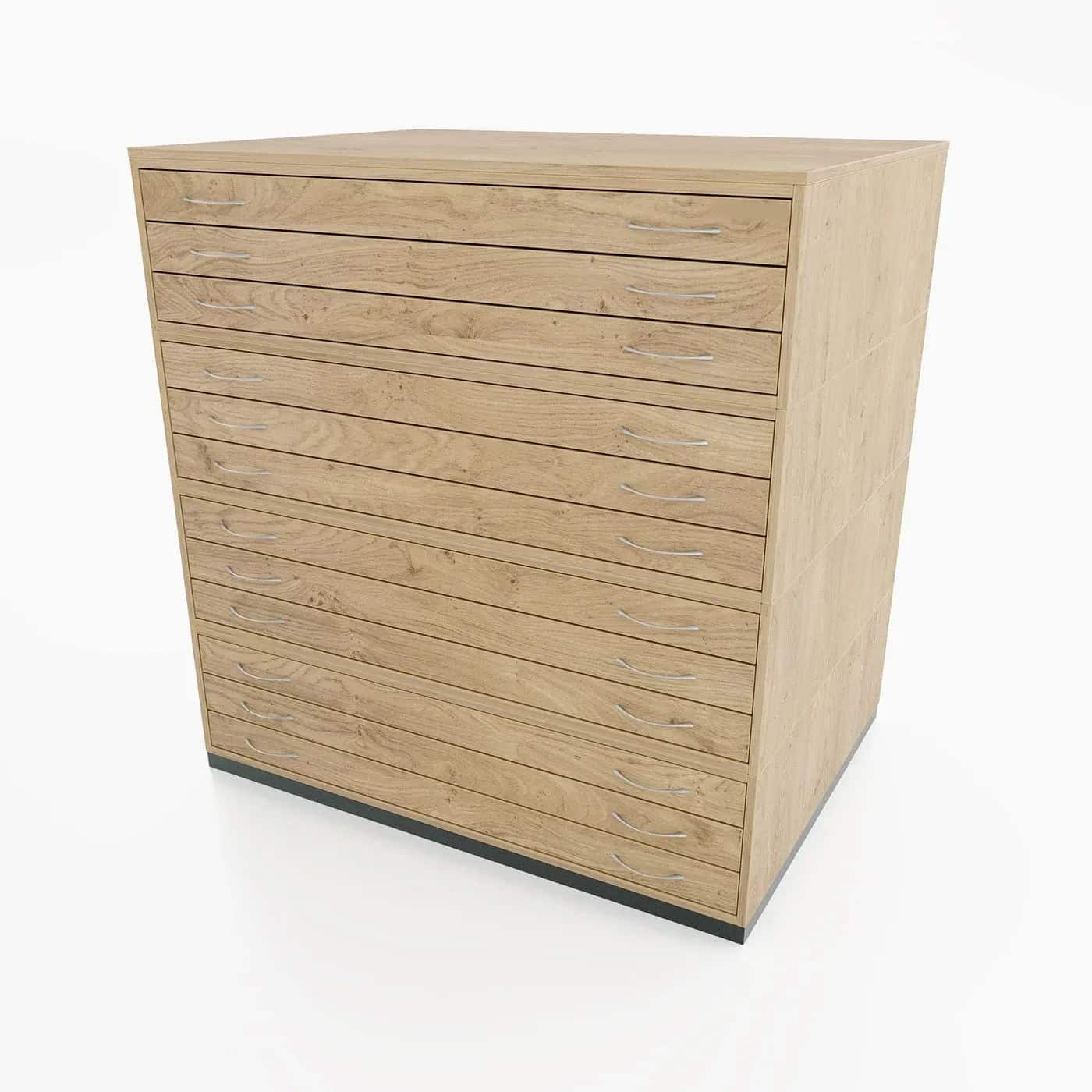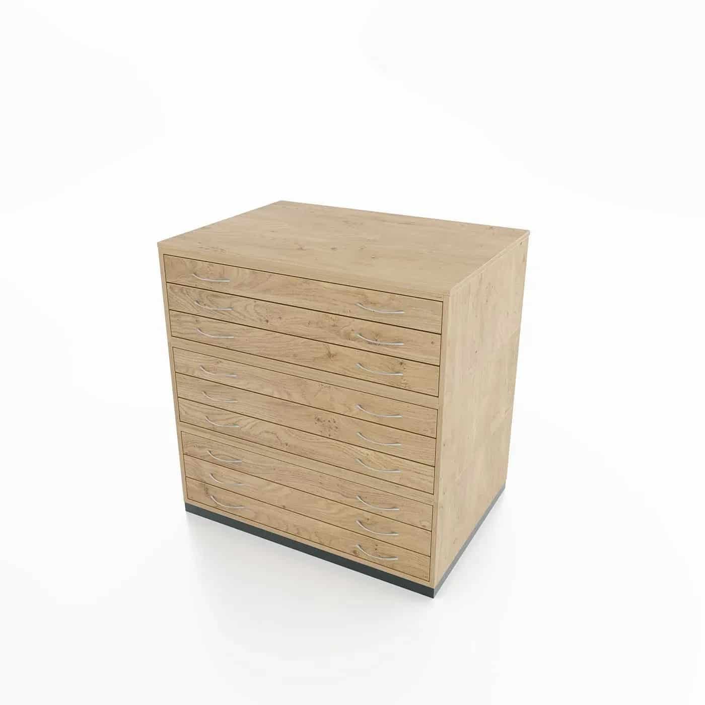 With sleek modern lines, the Classic plan chest is the perfect way to store A0 or A1 plans or drawings in a your office or home studio. The Classic Plan Chest is is a beautifully practical piece of furniture, available in a grey textured, warm natural light oak, brilliant beech or modern maple finish.