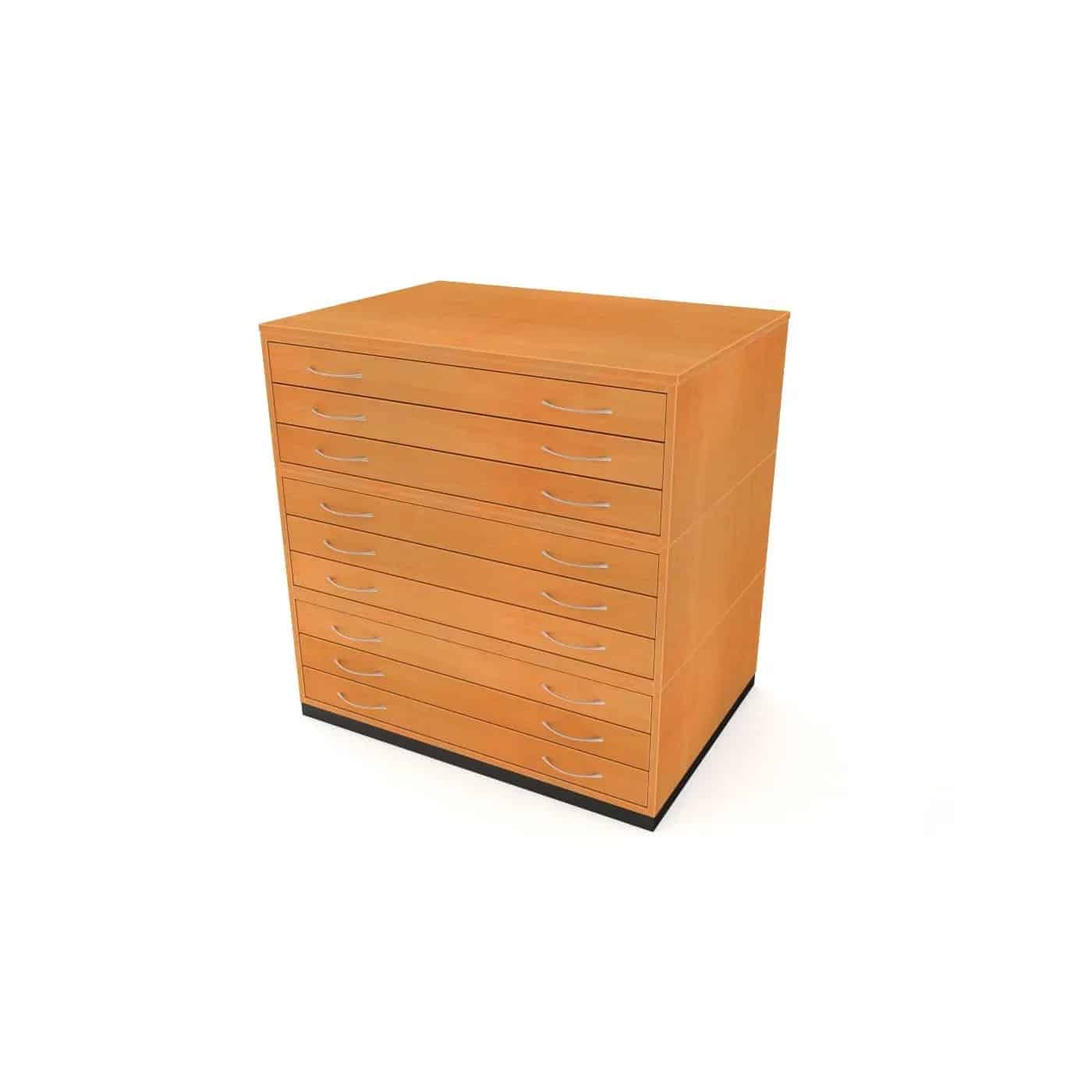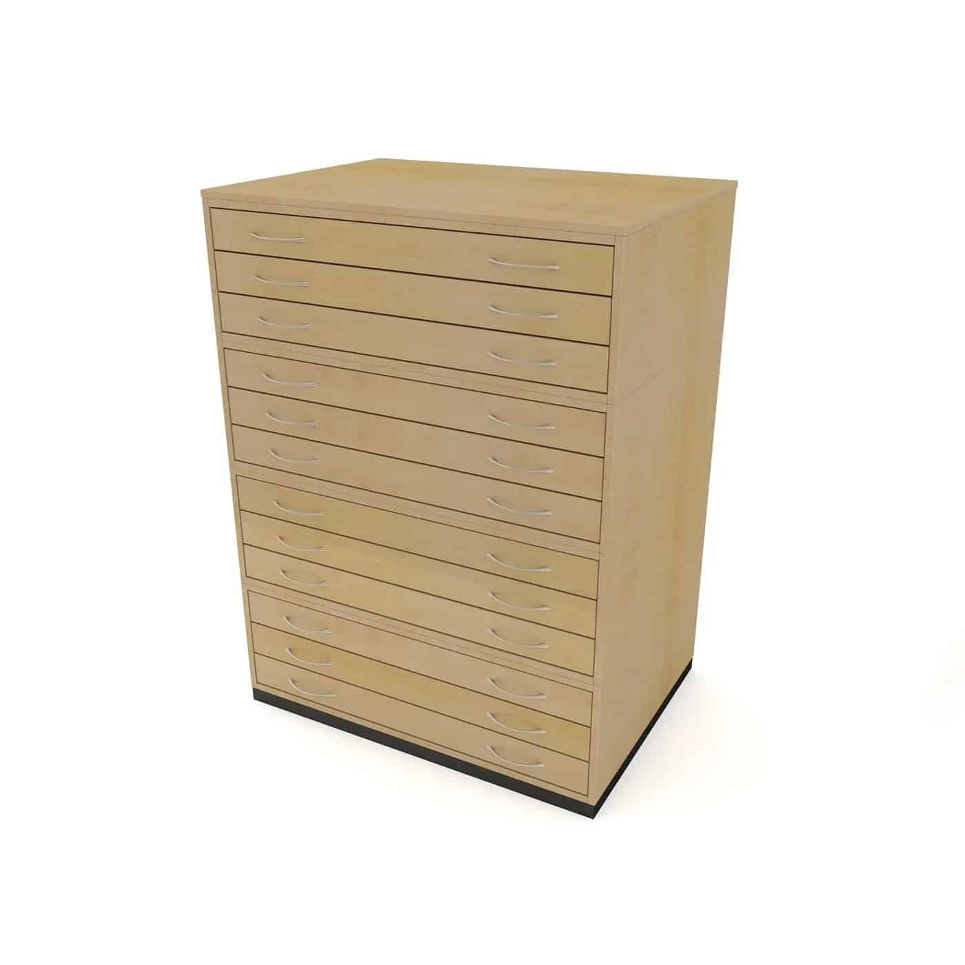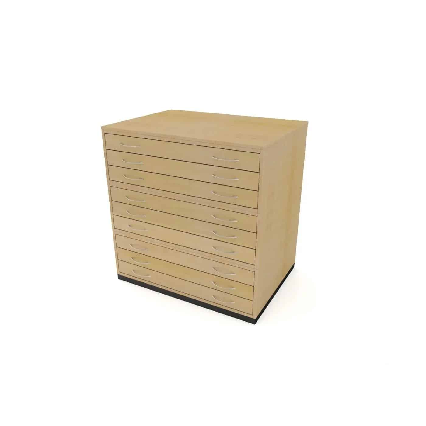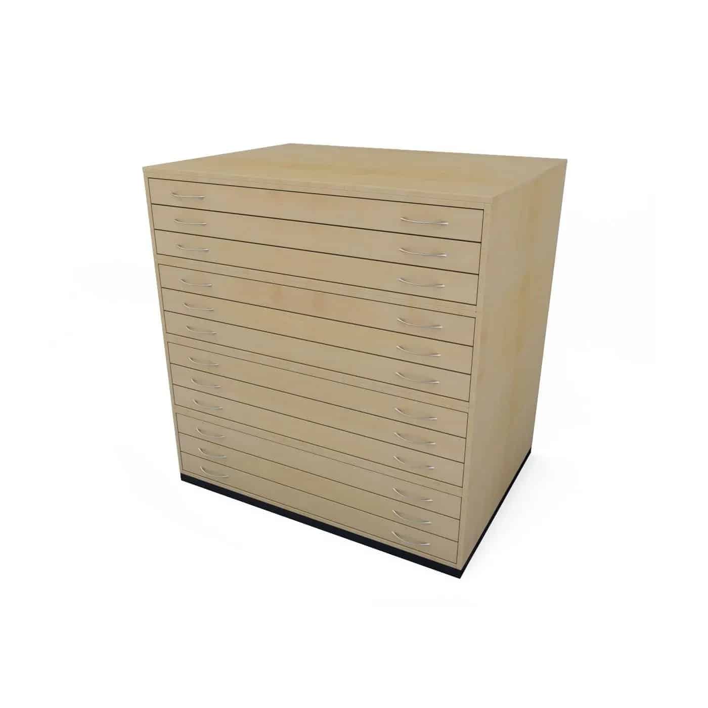 With sleek modern lines, the Classic plan chest is the perfect way to store A0 or A1 plans or drawings in a your office or home studio. The Classic Plan Chest is is a beautifully practical piece of furniture, available in a grey textured, warm natural light oak, brilliant beech or modern maple finish.