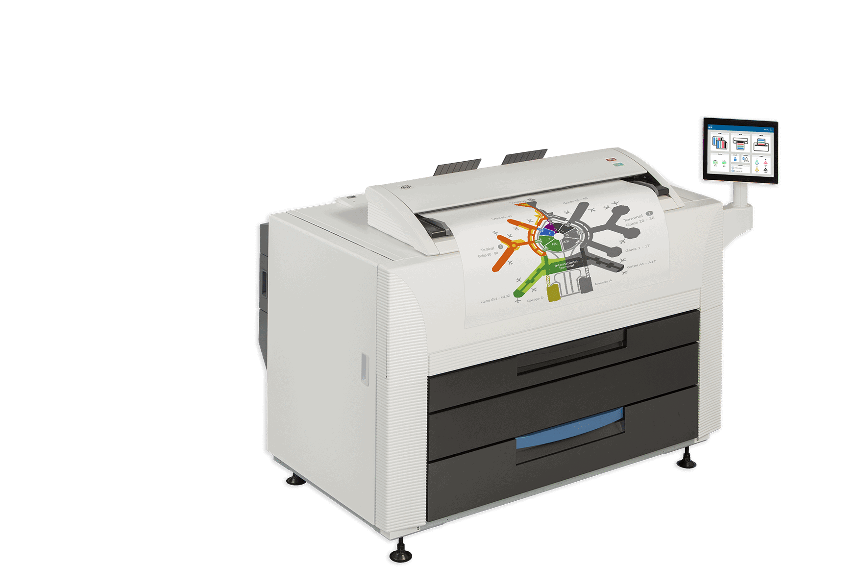 The KIP 800 Colour Series features a 12.1” true smart tablet function touchscreen with a full range of connectivity and intuitive navigation that keeps you in sync with how you want to work. Auto De-skew ensures perfectly aligned scans and copies every time.