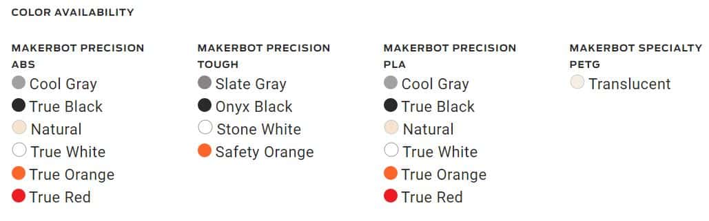 MakerBot Precision Tough PLA Material, available in 0.75kg/1.65lb) spools: