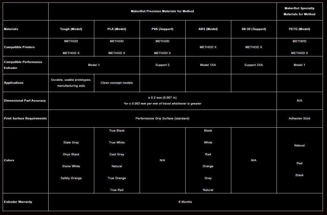 The MakerBot Method Series of 3D printers represent breakthrough technology, developed from the ground up, leveraging industry-leading Stratasys patents, including high quality components including a circulating heated build chamber, dual performance extruders, precision water soluble support PVA, precision filament material, dry-sealed material bay, intelligent suite of sensors, smart assist material loading and smart spools compatiblity.