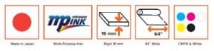 The Mutoh ValueJet VJ-1627MH Hot Air Hybrid Large Format Printer delivers an extensive colour gamut and excellent image durability. The Mutoh MP-31 multi purpose inks include high opacity white ink for prints on transparent and coloured substrates. The Mutoh MP-31 inks are extremely stretchable and shrinkable, making them equally suited for high stretch applications such as car wrapping, thermo/vacuum forming, and shrink applications. Mutoh MP-31 inks preserve natural texture and look of substrates, including matte or glossy.