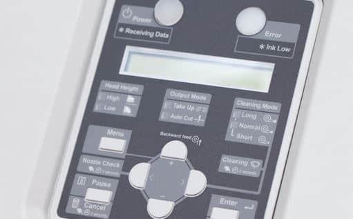 Intelligent design features make the Mutoh ValueJet VJ-1624WX easy to set up and operate. A newly designed keyboard with an easy and logical layout makes the VJ-1624WX easy to operate. Save time with the automatic sheet-off cutting function. Special ink sub tanks allow uninterrupted printing, even when loading new ink cassettes. An L-shaped cover has been added to the VJ-1624WX to allow easy access for periodic maintenance. Minimum periodic maintenance, flexibility of switching quickly between print jobs, and low ink consumption (average 8.5 ml/m² on uncoated PVC at 720 dpi with 67% coverage) means the VJ-1624WX swiftly turns an investment into profit.