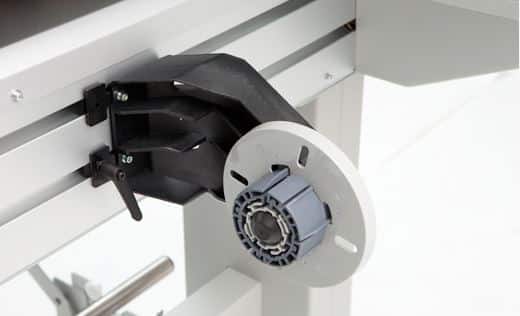 The Mutoh ValueJet VJ-1624WX comes with a stand and integrated roll holders. The VJ-1624WX incorporates a set of scroller supports mounted at the back of the machine. These supports enable non-motorised unwinding of media (2″ and 3″ core) up to a weight of 19 kg. The VJ-1624WX printer handles a wide choice of media, including both 2″ and 3″ rolls.