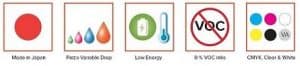 Mutoh UV LED inks enable printing on transparent and colour media with four colours and white and varnish. Available in 220 ml cartridges and high capacity 800 ml bags (500 ml bags for white), Mutoh UV LED inks allow specialty finishes and the staggered dual print head setup for the VJ-1638UR UV LED Printer are optimised to work with Mutoh UV LED inks. Mutoh UV LED inks are zero VOC liquids which do not contain hazardous air pollutants (non-HAP).