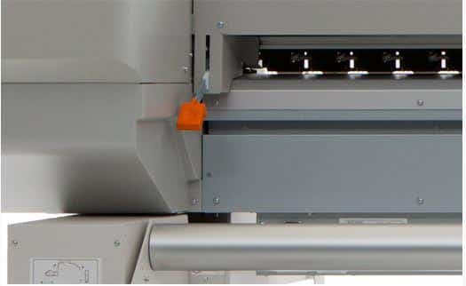 A newly designed keyboard with an easy and logical layout makes the ValueJet VJ-2638W Dye Sub easy to operate. Save time with the automatic cutting function. Special ink sub tanks allow uninterrupted printing, even when loading new ink cassettes. A tiltable ink cassette holder saves space and enables the use of different ink volumes. Ultimate flexibility is achieved with Mutoh’s VSM app for remote printer monitoring through a smart phone. The Mutoh ValueJet VJ-2638W Dye Sub incorporates a special print platen structure with three individually controlled heating elements. The heating elements tackle media pre-heating, ink fixation and drying of the prints to cope with higher print speeds and drying efficiency.