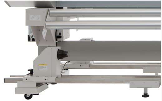 Intelligent design features make the ValueJet VJ-2638W Dye Sub easy to set up and operate. The ValueJet VJ-2638W Dye Sub comes with a stand and integrated roll holders and can handle 2″ and 3″ rolls. The ValueJet VJ-2638W Dye Sub comes with a set of pre-mounted and repositionable scroller supports for easy single operator roll loading. Media load levers are positioned both at the front and the back of the VJ-2638W Dye Sub for convenience. These scroller supports enable non-motorised roll-off of rolls up to a weight of 30 kg. Different motorised winding/unwinding systems are available for roll-to-roll production.