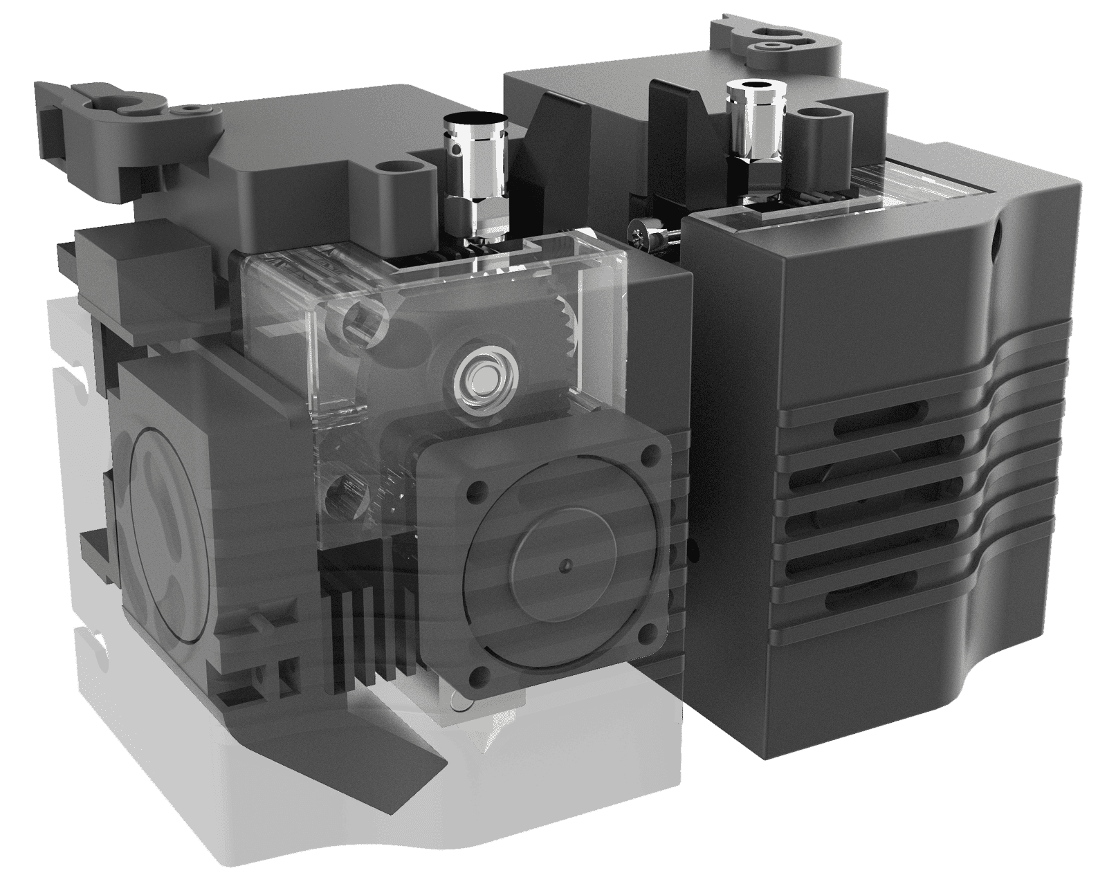 The Raise3D E2 3D printer has a maximum print volume of 330mm x 240mm x 240mm. The E2 3D Printer includes Independent Dual Extruders (IDEX) enabling Mirror and Duplicate printing modes, delivering multiple prints simultaneously. Mirror Mode produces 3D models and their inverse simultaneously, increasing productivity and reducing print time. The Duplication Mode uses both extruders in synchronised printing, doubling production capabilities. Improvements to the extruder with a reduced feeding path result in improved flexible printing, including over a 200% increase in printing speed with flexible material compared with standard printers. Extremely soft material like elastic TPU 60A is printable, because the feeding path guide goes directly up to the feeding gear contact point.