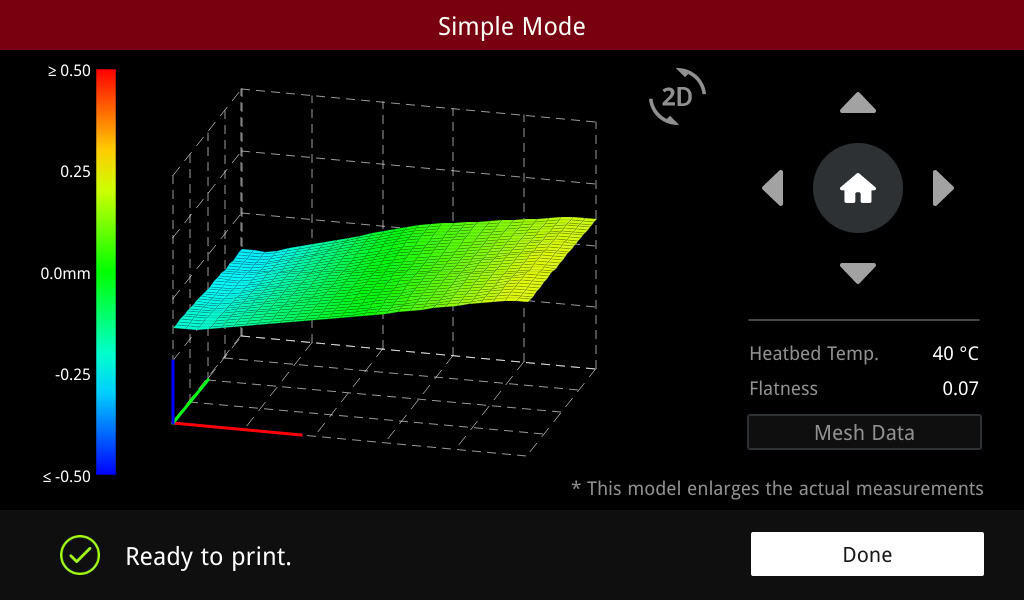 The E2 3D printer features Auto Bed Levelling , which automatically scans the print bed’s flatness and adjusts accordingly. Based on an electromagnetically driven probe with a high precision optical sensor, the ABL delivers high repeatability, with a repeat accuracy within ±0.006mm. ABL confirms the printing platform is level whenever preparing to print and uses intelligent levelling, detecting only the printing area, which saves time and increases accuracy. ABL maintains the distance between the print nozzles and bed, creating a uniform build area, eliminates temperature drifting, and improves bed adhesion and print quality by allowing the extruder to adjust to even minor surface contour changes.