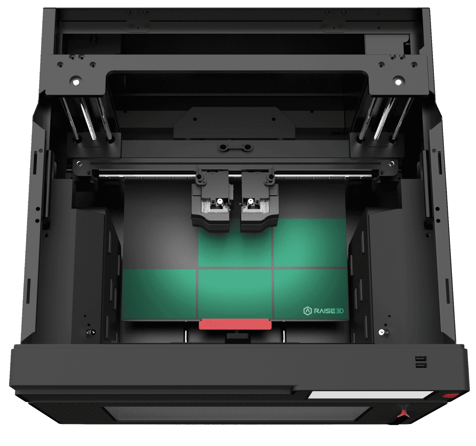 When printing large objects with filament that tends to heavily warp (Nylon and PC), Raise3D recommend using a hard plate, an optional accessory for the E2 3D printer.
