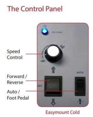 Save time by keeping control of the job, from wide format print to wide format finish. The Easymount Sign EM-S1400C is versatile and easy-to-use. With an impressive laminating speed of 5m/16ft a minute, the EM-S1400C accepts up to 25mm/1″ mounting thickness. The EM-S1400C features self gripping mandrels and a flip down feed tray for easy access to load rolls of material. The large, cambered rollers deliver even and precise pressure, and the magic eye safety feature prevents the rollers from moving when interrupted. A foot pedal is included as standard, and a handy reverse mechanism make it easier to control your jobs. Excess backing liner is kept tidy for disposal with the release liner take-up.