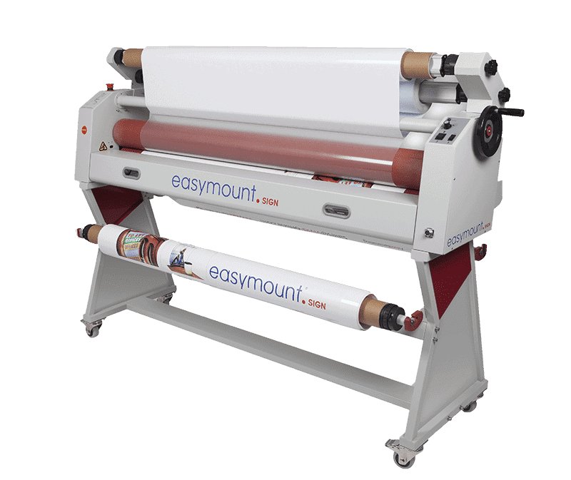 The Easymount Sign EM-S1600C is a 1620mm/63″ cold laminating and mounting system ideal for heat sensitive prints including vinyls and adhesives. Designed for sign makers and print finishers, the Easymount Sign range of wide format laminating systems are entry- level simple solutions for professional, cost effective finishing. Laminate signs, single banners, windows graphics, reel to reel laminates, and more. The Easymount Sign range of cold laminators also includes the EM-S1400C, a 1420mm/55″ . The Easymount Sign wide format laminators can also be configured as a hot system, with heated rollers, including the EM-S1400H and EM-S1600H models. All Easymount Sign wide format laminating and mounting systems include a take-up unit.
