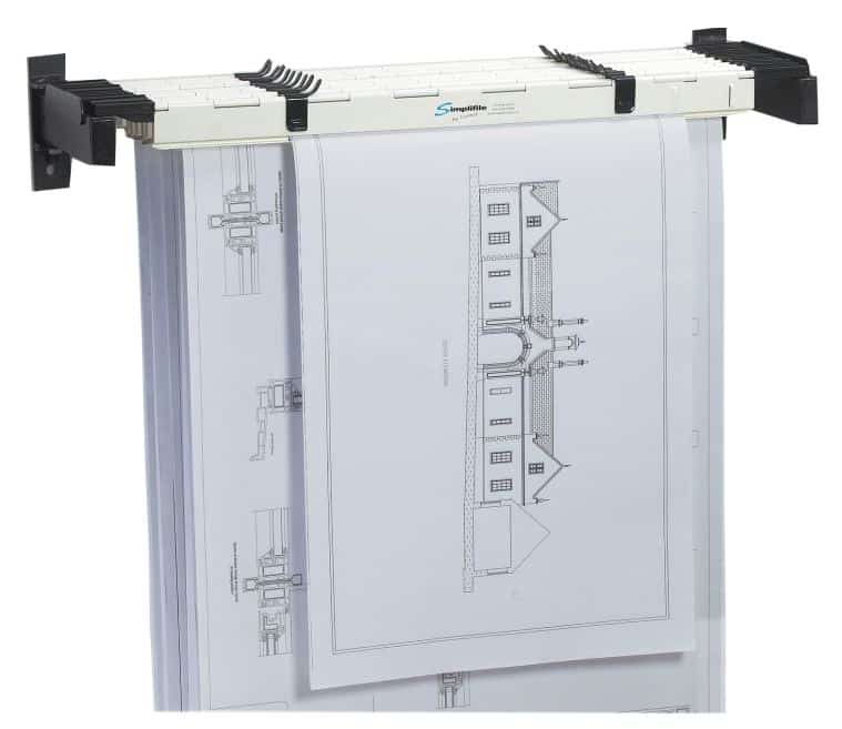 The Simplifile ECO A0 Wall Rack with 10 ECO A0 Planholders keeps plans at hand, but out of the way. Designed to be mounted on the wall, the ECO Wall Rack frees up floor space. The ECO A0 Wall Rack with 10 A0 Planholders can store up to 1000 drawings and plans.