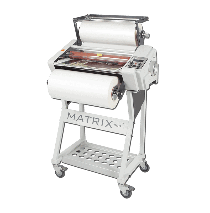 Matrix Duo is an innovative multipurpose single/double sided roll fed system ideal for both laminating and encapsulating. Great for digital printers, in-house print rooms, and copy and print shops, the Matrix Duo range includes the MD-460, 460mm/18″, and the MD-650, 650mm/26″. Ideally suited for business cards, menus, brochures, posters and prints, book covers, and more, the Matrix Duo provides and affordable and effective solution for single side lamination, encapsulation and double side lamination.